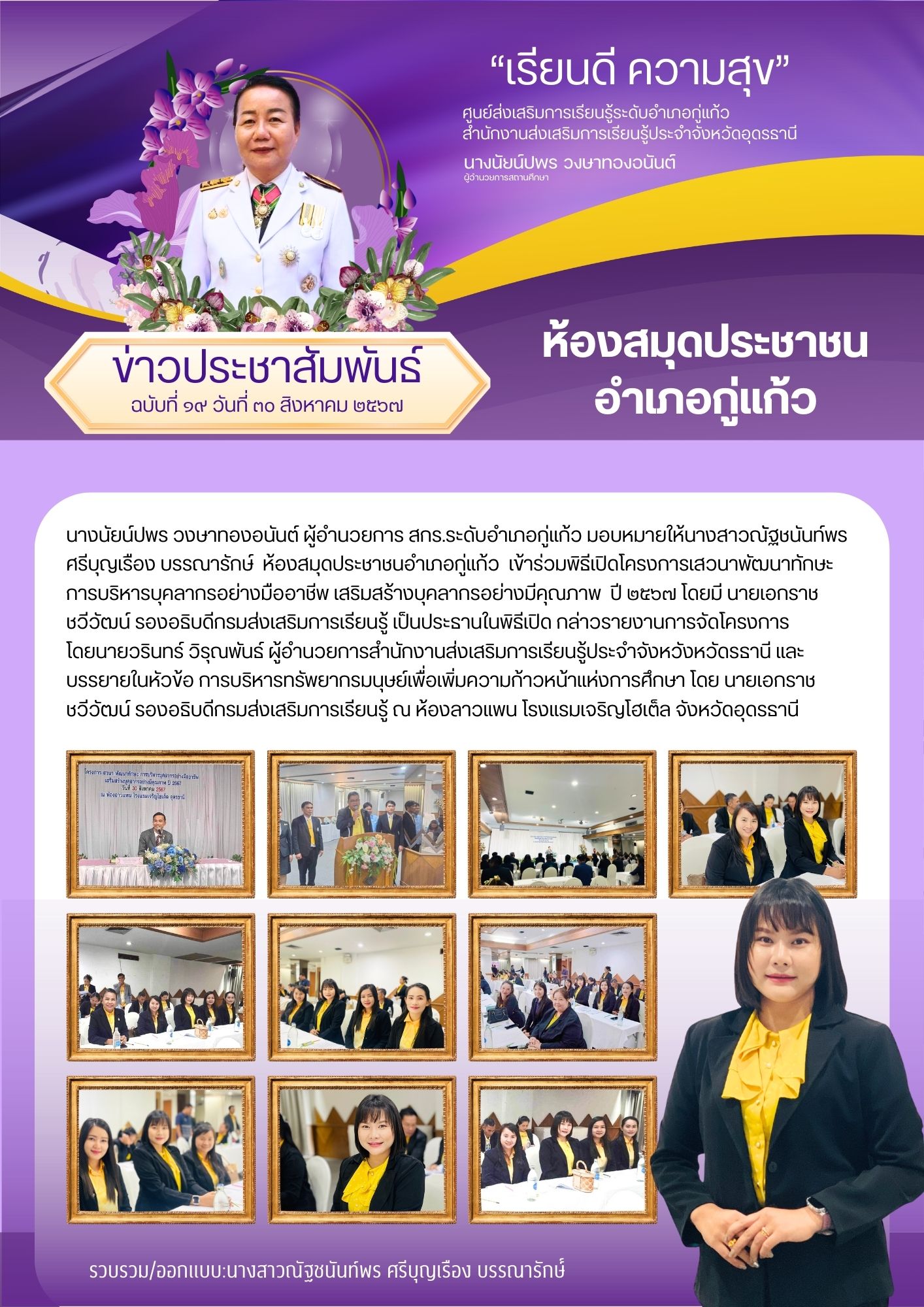 สกร.ระดับอำเภอกู่แก้ว ร่วมสร้างสังคมแห่งการเรียนรู้เพิ่มโอกาสและคุณภาพทางการศึกษาของประชาชาชนในทุกช่วงวัย
